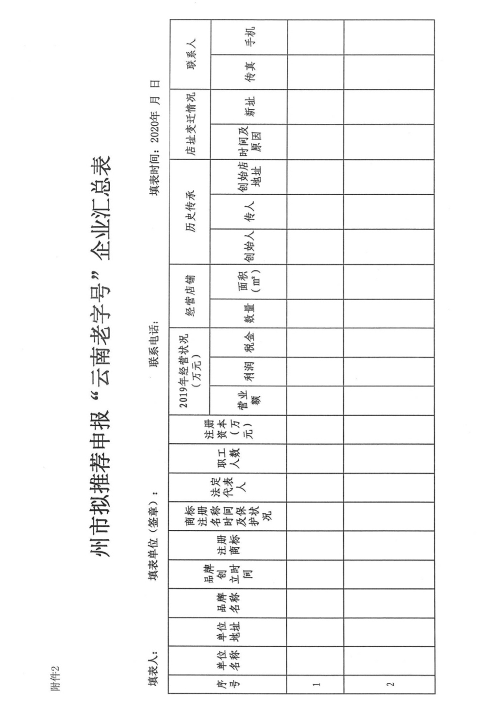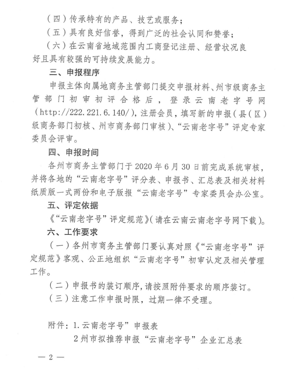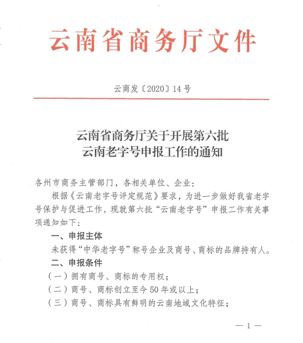 关于转发云南省商务厅开展第六批云南老字号申报工作的通知