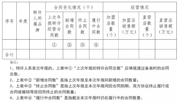 企业用备案时获取的登录号和密码进入“商业特许经营信息管理系统”,自行按照“经营合同年报”(新版)表中的备注说明要求将上一年度订立、撤销、续签与变更的特许经营合同年报在系统中予以提交,并确认。(步骤:登入企业系统后台-→点备案管理-→经营合同年报→右上角新增数据- +填写提交并确认即可)![]()