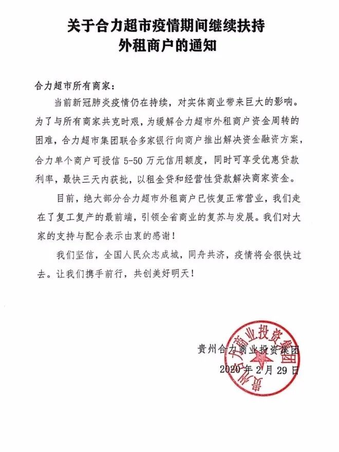 3月3日,联商网与商业地产志联合发布内地177家商场2019年业绩情况。本次业绩调研范围涉及全国18个城市(不含港澳台),共177家商场。2019年,这177家商场总销售额超4125亿元。百亿业绩俱乐部扩容到4家,分别是北京SKP(153亿元)、北京国贸商城(117亿元)、南京德基广场(近122.4亿元)、杭州大厦(超105亿元)。统计显示,2019年业绩50亿元以上的商场有17家,占比9.6%。业绩30亿元以上的商场有41家,占比23%,奥特莱斯5家。(联商网)外媒消息,美国连锁超市Trader Joe's创始人Joe Coulombe于2月28日在美国洛杉矶去世,享年89岁。Trader Joe's前身是加州一家便利店品牌,后为应对7-11竞争开始发展自营产品,逐渐成为以自有品牌见长的精品超市。资料显示其自有品牌占比达80%,毛利率40%,截至2019年11月在全美开店503家,2017年营收133亿美元。2020年伊始,突如其来的新冠肺炎疫情,导致全省各地诸多店面大多生意冷清,甚至关门歇业。为缓解各合作商家的经营压力,贵州合力超市集团推出免租举措,对全省合力超市外租商户免除30天租金和管理费,免除费用达一千多万元。据了解,目前,绝大部分合力超市外租商户已恢复正常营业,为了与所有商家共克时艰,缓解外租商户资金周转的困难,合力超市集团联合多家银行向商户推出解决资金融资方案,合力单个商户可授信5-50万元信用额度,同时可享受优惠贷款利率,最快三天内获批,以租金贷和经营性贷款解决商家资金。贵州合力超市集团表示,将尽全力帮助外租商家,渡过疫情难关!9、苏宁易购:2月份苏宁拼购订单量同比增长866%