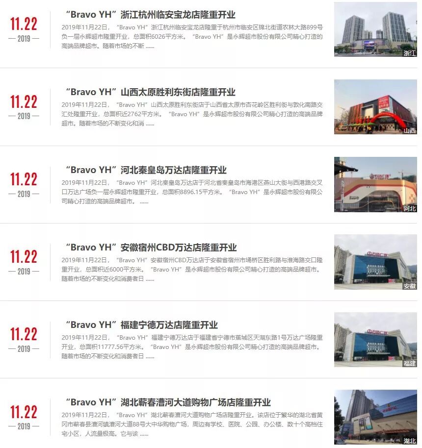 呆萝卜在APP上发布了《告顾客书》,称正在积极筹措资金,未来每周会在APP上予以进展公告。此次危机则主要因扩张过快而融资步伐没能同步跟进,及信息不对称所致。未来相信在政府及相关部门大力支持下,消费者、供应商、加盟商、合伙人的理解和支持下,呆萝卜一定会凤凰涅槃,早日恢复正常运营。这份公告似乎显示,呆萝卜目前的资金链问题,政府及相关部门已介入。而伴随着这份公告,呆萝卜则似乎全线停运,在其APP上,无论是总部合肥,还是南京等城市,呆萝卜APP上的商品全部都已下架,既无法下单,也没有商品可供出售。2、永辉精致超市“Bravo YH”六店同开,进驻秦皇岛万达广场等11月22日消息,记者获悉,据永辉超市官网显示,永辉精致超市“Bravo YH”今日6店同开,分别位于杭州、太原、秦皇岛、宿州、宁德、黄冈。11月19日,光明乳业股份有限公司(600597.SH)与阿里云计算有限公司正式达成战略合作。光明乳业副总裁罗海先生和阿里云智能通用行业事业部总裁任庚先生分别代表公司签约,光明乳业董事长濮韶华先生和阿里巴巴集团董事局主席兼首席执行官张勇先生见证签约。(快消品网)4、雷军到茅台谈合作:茅台+小米,传统工艺与现代科技完美融合