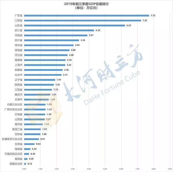 11月16日,国家统计局公布31省份2019年前三季度GDP数据。目前GDP万亿俱乐部成员已扩大至25个,广东以7.72万亿居首,
