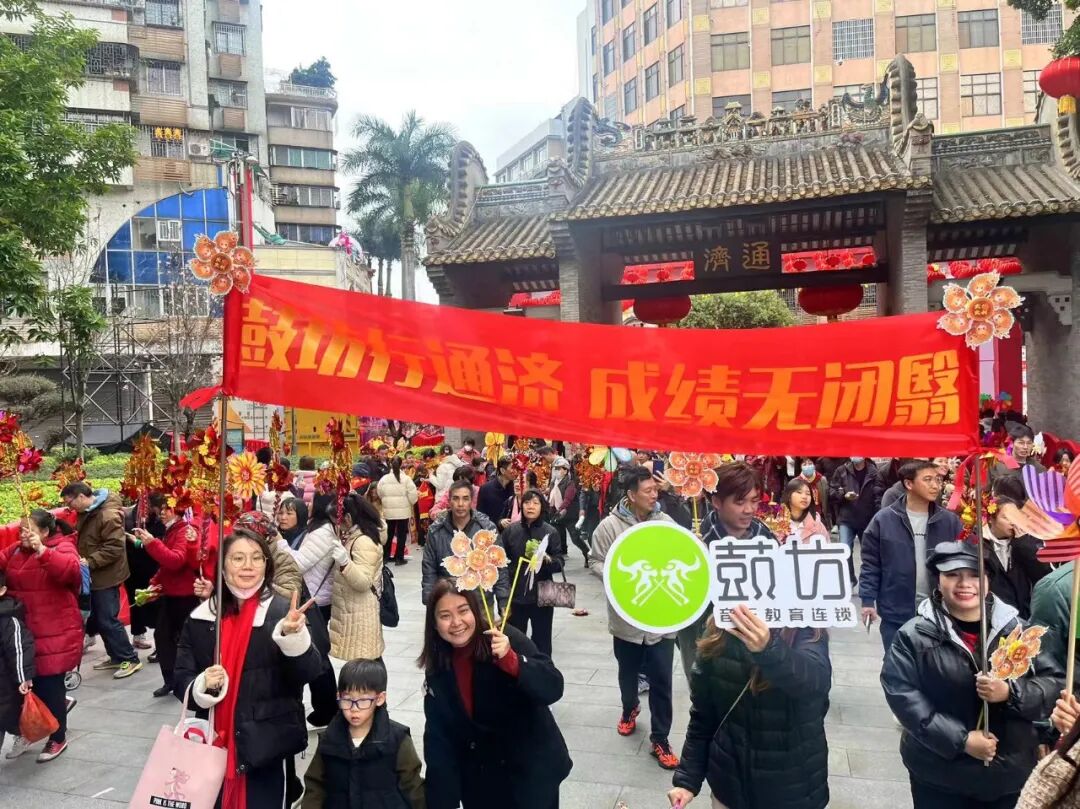 佛山地区元宵节前后“行通济”已是一项全民参与的民俗活动,几十万市民游客手捧生菜、携家带口,走过通济桥,祈求新的一年平安吉祥、顺风顺水。今年“百企千人 政企同心”方阵的首次出现,为活动增添了一抹亮色,更体现出禅城营商环境优质、企业兴旺蓬勃的生态。
