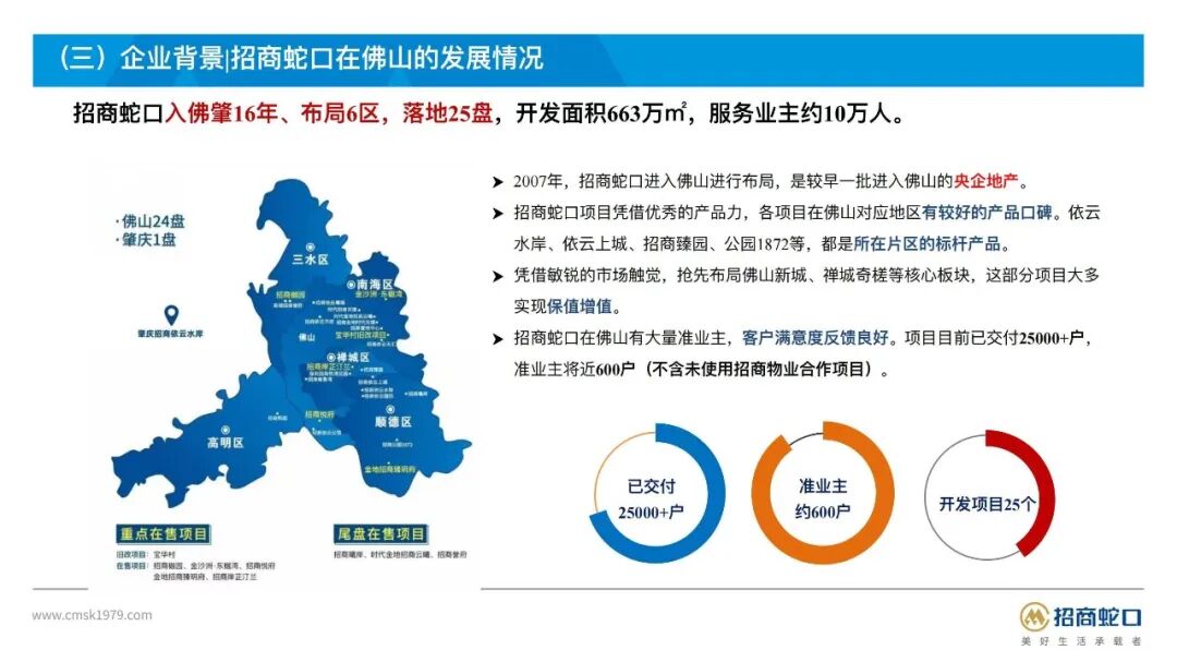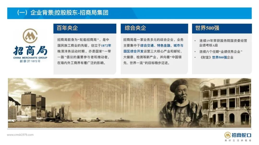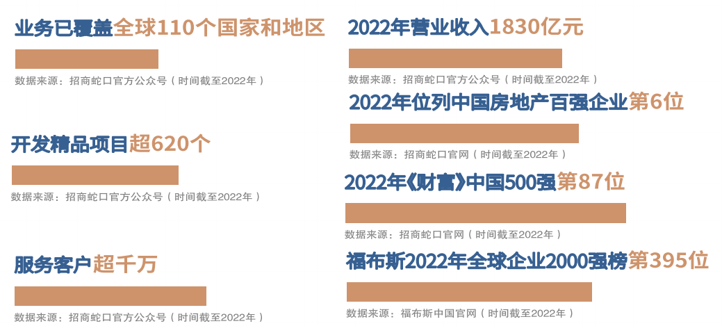 招商蛇口是招商局集团旗下城市综合开发运营板块的旗舰企业,拥有5个上市平台,着力构建企业高质量、可持续发展引擎,并以综合发展模式,在产业园区、集中商业、物业服务、邮轮、会展、社区开发、大健康、文化、酒店公寓等专业或特色领域,培育和输出 25 条标杆型产品线,360 度启航美好生活新方式,为城市发展与产业升级提供综合性的解决方案。招商蛇口以优秀的产品品质和领先的服务水准深受信赖,企业品牌价值位列行业TOP5。目前招商蛇口的业务已覆盖全球110个国家和地区、开发精品项目超620个、服务客户超千万。