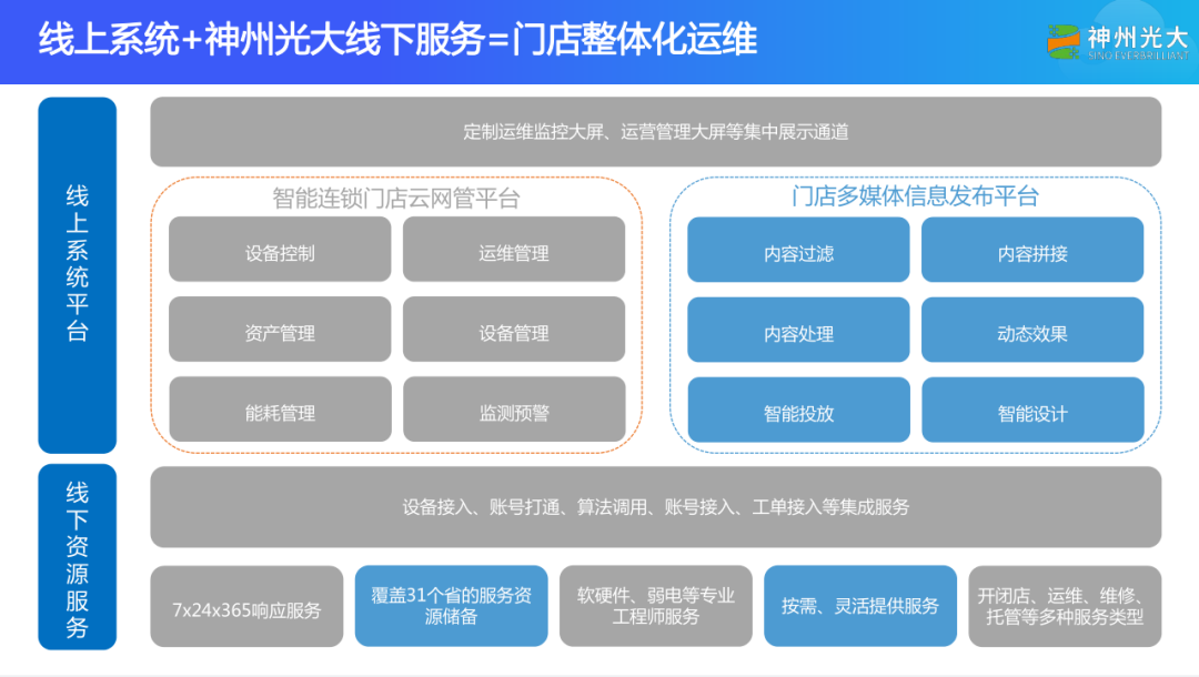 模式创新:神州光大在国内率先开创了“服务资源云化+平台集中管控+分布式敏捷交付”的新型服务交付模式,打造了业内领先的全时、全域、全栈的分布式敏捷交付平台 -“神行云”;