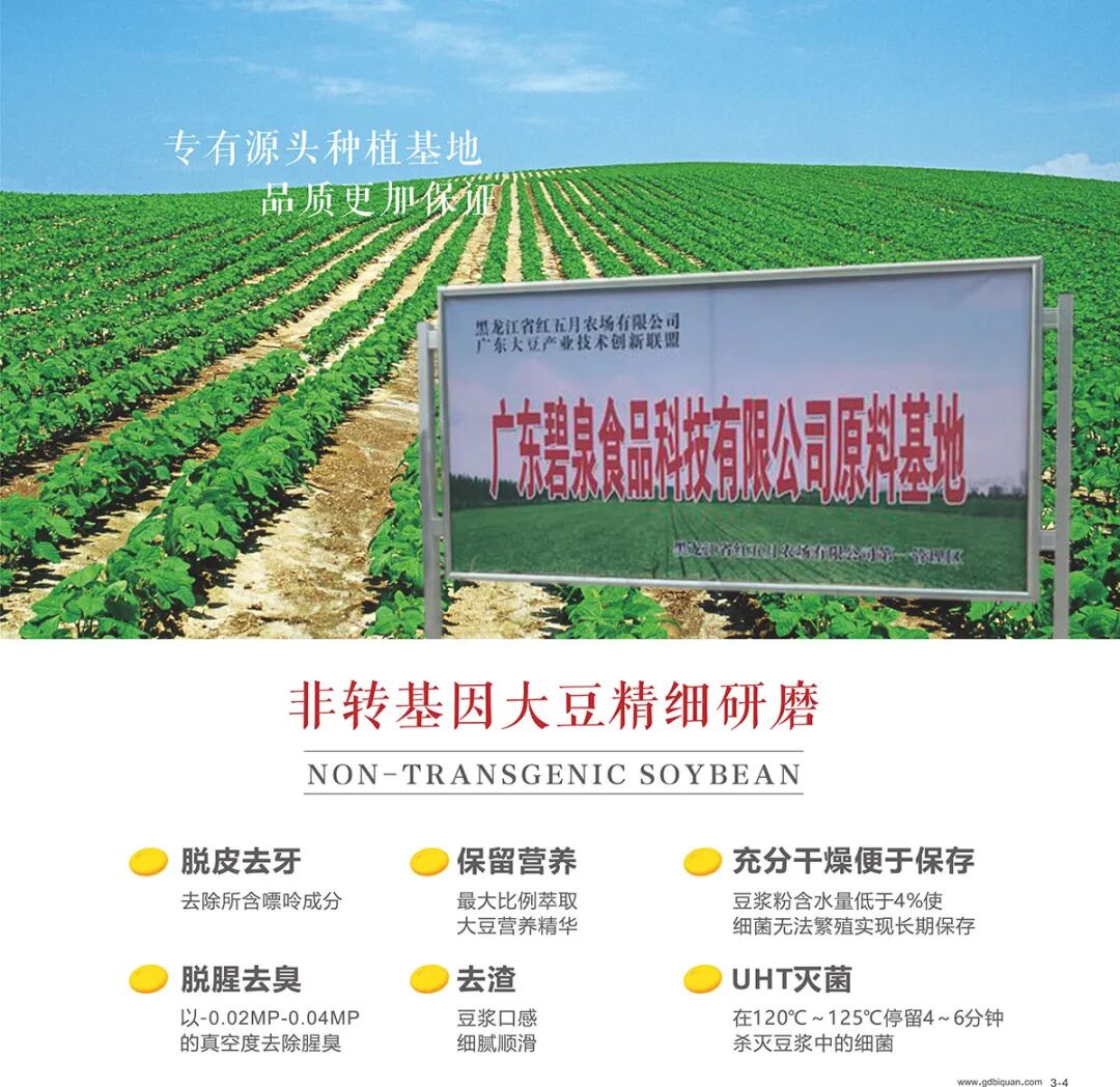 并投入引进3套具有国际先进水平的食品深加工生产设备,主要从事大豆及五谷杂粮的深加工,主要原材料采用中国黑龙江寒地黑土非转基因的当季大豆,主要产品有速溶豆浆粉、速食豆腐花粉、速溶豆浆、豆浆晶、高蛋白豆浆粉、高蛋白豆腐花粉,即食豆腐花、豆腐、腐竹、五谷养生系列等产品。年产量可达2万吨。