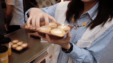 双皮奶是来佛山的必吃甜品,而双皮奶mix蛋挞这新奇的搭配,一定要pick!酥脆的蛋挞皮,双皮奶在DuangDuang地动,一口下去奶香迸发,嫩滑酥脆双重口感,绝!