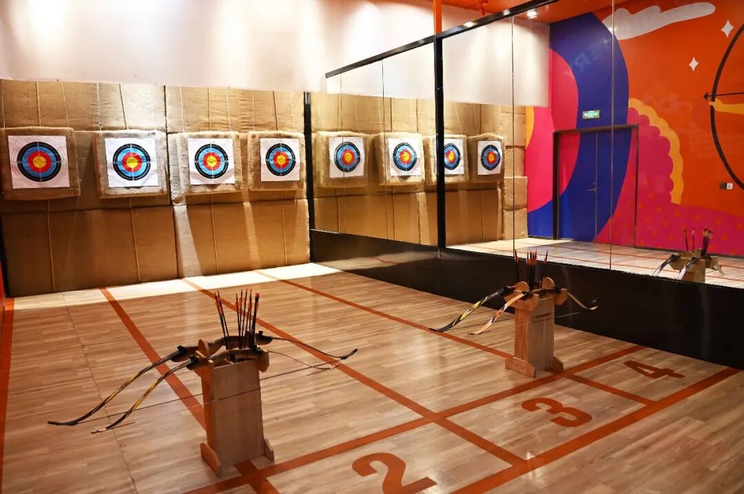 跃空间ROCKIN’JUMP美式蹦床乐园(国瑞店)坐落于佛山禅城国瑞升平里商业中心,场馆面积约为6000+㎡,玩乐项目包括蹦床、垂直攀岩、障碍跨越、蹦床投篮、蹦床躲避球、荧光派对、泡沫跳跃、平行对抗、花式蹦床、AR攀岩、平行对抗、空中瑜伽、射箭馆、桌游电玩等。