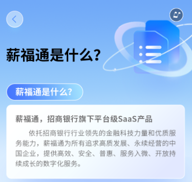 招商银行是一家持有商业银行、境外投行、理财、基金、保险、金融租赁、消费金融等多牌照的银行集团。对零售连锁企业有自研的专业系统“薪福通5.0”重磅赋能,金融科技,让企业成长再次发生。
