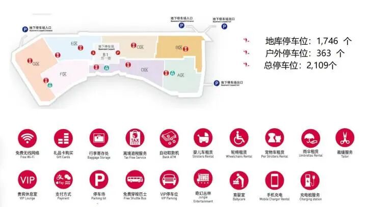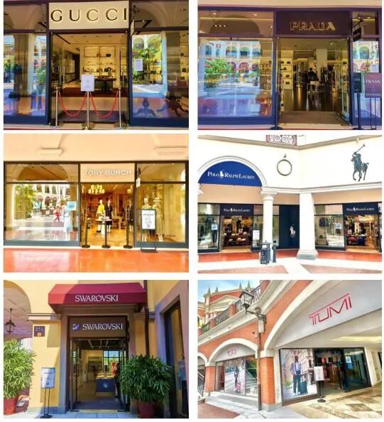 Gucci,Prada,Jimmy Choo,Tory Burch, Polo Ralph,Lauren, Tumi, Swarovski,I.T,Inniu,J. Lindeberg,Jorya 和 St. Dupont 等众多国际品牌,在这里是全广东省独家直营奥莱门店。
