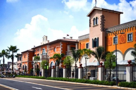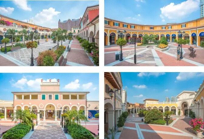 小镇整体建筑包括欧洲园林式广场和托斯卡纳风格建筑,总面积约110,000 平方米,是规模较大的主题购物旅游景点。