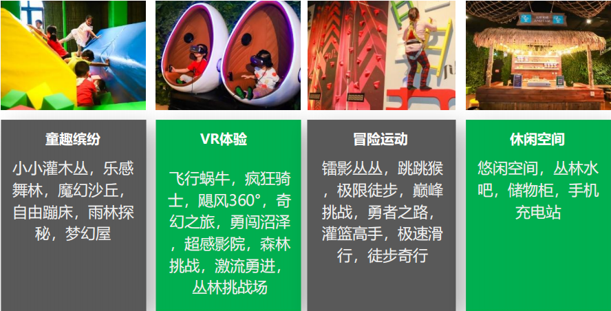 “奇幻丛林”家庭游乐中心经营面积近3,000平方米,其配置了20多项丰富而先进的娱乐设施,呈现特色化、场景化的家庭综合游乐中心。