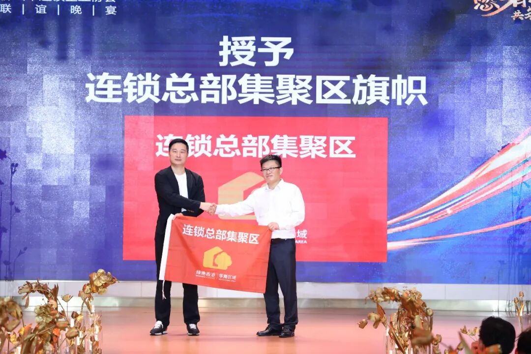 授予绿地香港-华南区域为连锁总部集聚区的旗帜。期待未来有更多优质的企业与项目落户连锁企业总部集聚区。