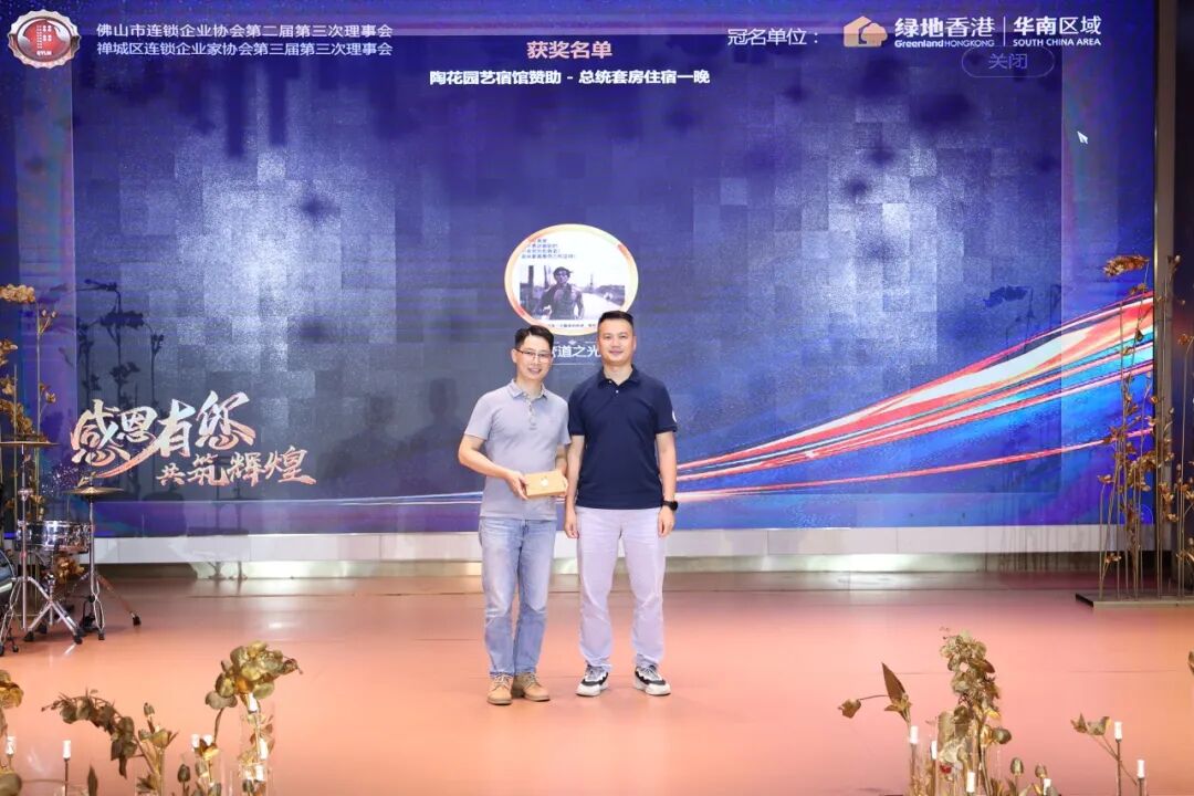 感谢懿嘉知煮、乔府大院、佛山广物君奥奥迪、招行信用卡部、驼宝汇、希尔广告、陶花园汽车酒店、固真酒业、植芝盈、我赛尔体育、锐恩精酿、鼓坊教育为本次晚宴提供的奖品。