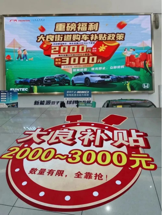 汽车补贴:2023年8月1日至9月30日,来佛山顺德大良买车,除车企常规优惠外,还可额外获得最高3000元政府补贴!资金规模300万元,先到先得,发完即止!按照申报先后顺序进行资格审核,以资格审核通过先后顺序发放补贴。