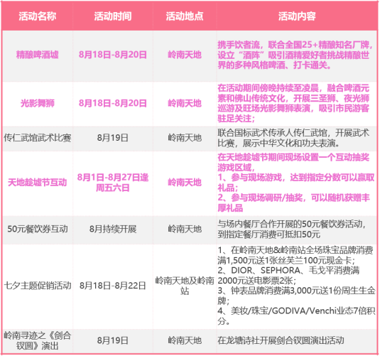 8月18日-20日举办精酿啤酒墟活动,融合佛山传统文化,开展光影醒狮表演、武术比赛,将文化与啤酒美食以不一样的方式,为来自全国各地的消费者呈现“最佛山”“最岭南”的城市夜经济消费活力场景。