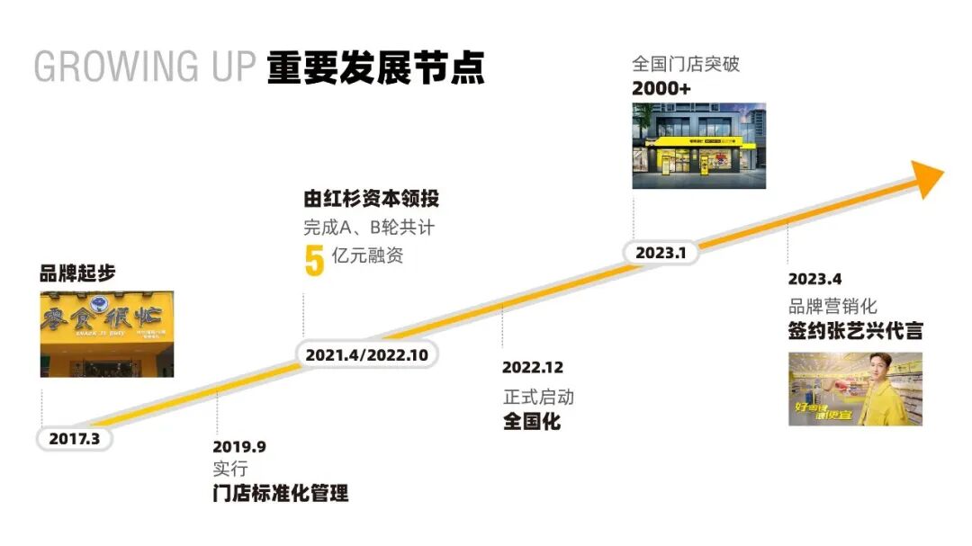 零食很忙品牌起步于2017年,2022年2000多家门店,60亿营收,2023年每天开6家店,目前已超3000家门店,年营收超100亿。以行业发展速度快被外界关注;作为加盟连锁品牌强管门店,致力于将加盟连锁做得比直营更好。