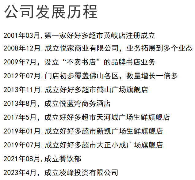 好好多,创立于2001年,隶属于佛山市悦家商业有限公司,主营业态包括大卖场、便利店、社区店、生鲜超市、中型购物中心、书店、酒店、餐饮等业态。目前拥有员工超1500人,分店达到40多家,经营面积超过10万平方米,配送中心占地面积2万平方米,冷库容积率达5000平方米。主要分布在佛山五大区以及江门鹤山等地,是佛山地区门店最多的民营连锁超市之一。