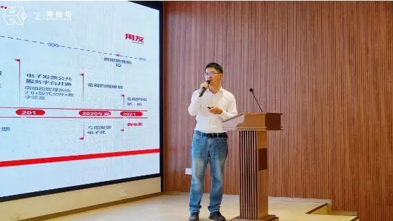 用友网络高级方案咨询顾问 黎坚带来主题分享《告别纸质发票,迈向数电票新时代》。