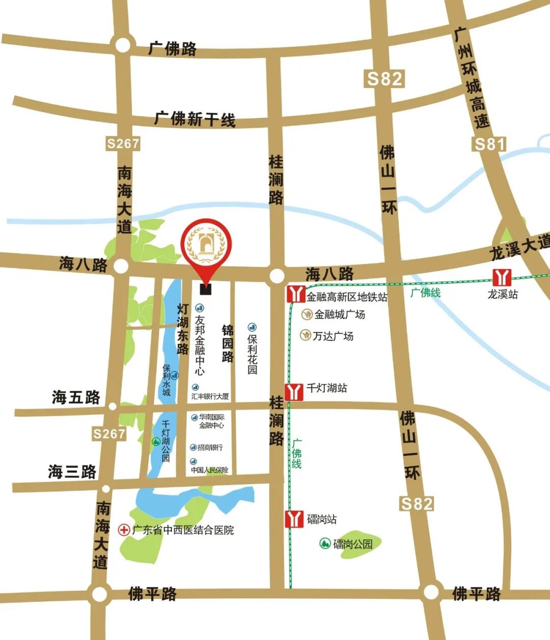 总建筑面积达36万平方米,建筑规模宏大,地上四十层地下二层,提供2000个停车位,整个裙楼建筑由商业环绕,与市政慢行系统无缝接入,与相距300米的广佛地铁金融高新区站点及AIA友邦大厦、广发银行总部连通,极大的方便宾客以最短时间、最便捷的方式抵达目的地区域。