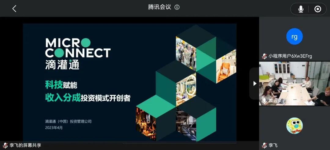 6月7日协会组织近10家会员企业就“滴灌通新型投资模式”进行分享会议,由滴灌通(中国)投资管理公司副总裁李飞分享,投资对象:10间连锁门店,成立2年以上,收入正向的门店(加盟门店需要收银统一,数字化统一);单店年收入500万以上。出资比例:滴灌通出资额≤50%,无抵押、无担保、不稀释股权、不干涉经营、不用还本付息,合作行业:餐饮、零售、文体、服务行业。