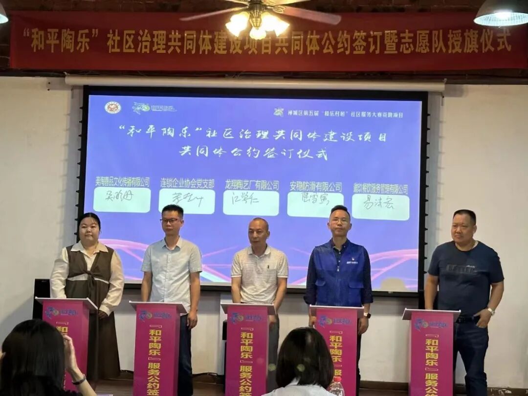5月17日,石湾镇街道和平社区举行“和平陶乐”社区治理共同体公约签订暨志愿队授旗...