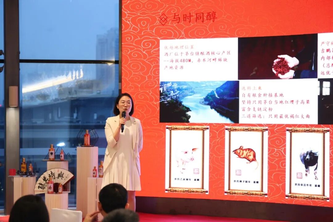 吉鹏昌酒业公司副总经理周楠女士给大家介绍了公司背景及自有酒厂,并在游戏互动游戏当中邀请嘉宾上台盲评吉鹏昌的鼠牛虎兔四款生肖酒,让各位企业家在趣味中更加加深了对吉鹏昌酒业的了解。