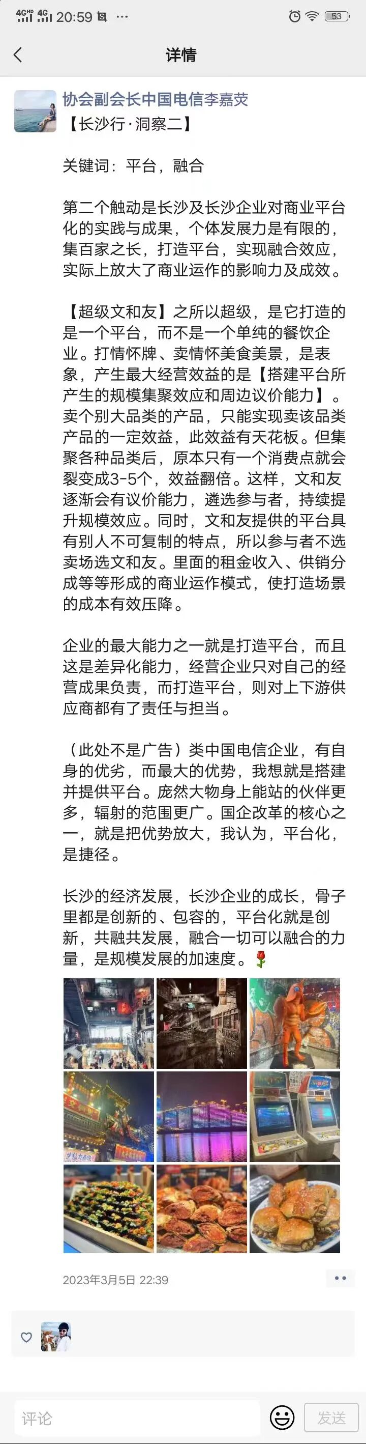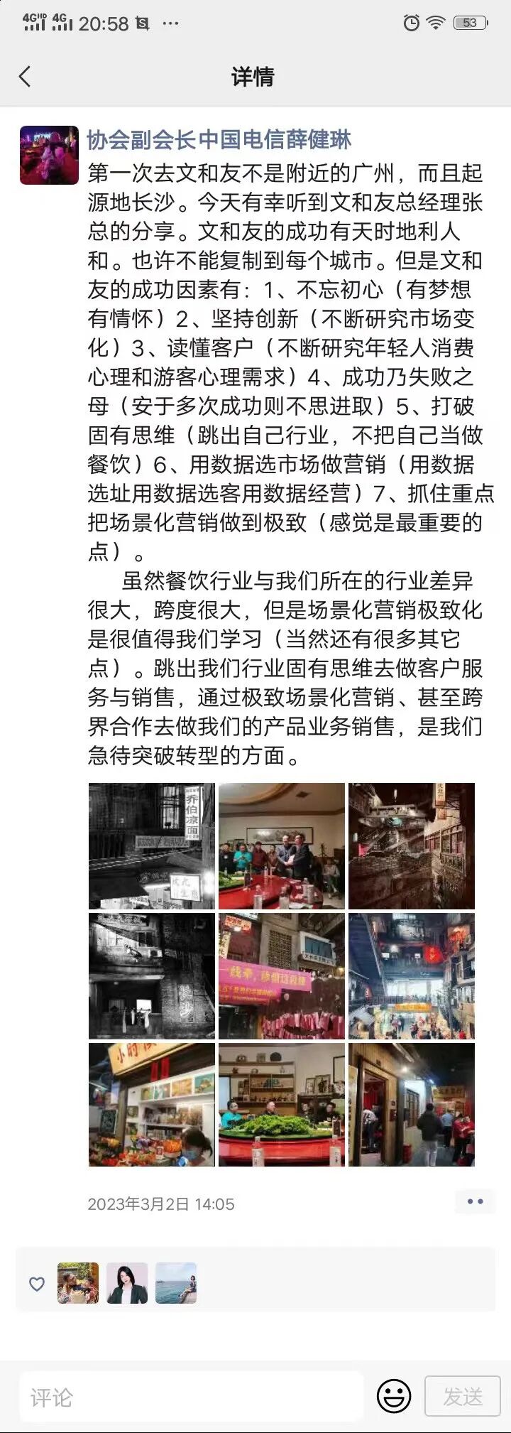 中国电信佛山分公司的朋友圈分享给大家