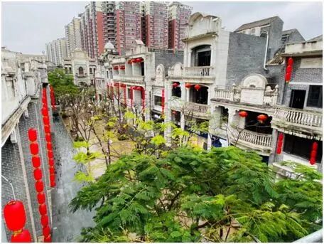 一期国瑞升平里以复建商业街为主,复建商业包含忠义牌坊、琼花会馆、汾宁古道、陈华顺故居、升平堂基督教堂5大景点,商业街区为地面部分由1-2层部分到3层的复建建筑组成,分成7个区域配以扶梯、电梯连通,整体规划以粤菜美食、文化体验、文化非遗老字号等业态。