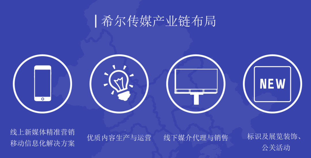 希尔传媒以【4A整合营销传媒集团】形象深耕粤港澳大湾区:珠海、澳门、中山、江门、肇庆、清远、惠州、佛山、广州、阳江,同时与北京、上海形成资源联盟,四大业务板块以线上新媒体和线下媒介的全方位强势媒体矩阵为依托,通过精准营销及优质内容生产运营的有效联动,以标识落地和公关活动为支持,实现一站式整合营销传播服务。