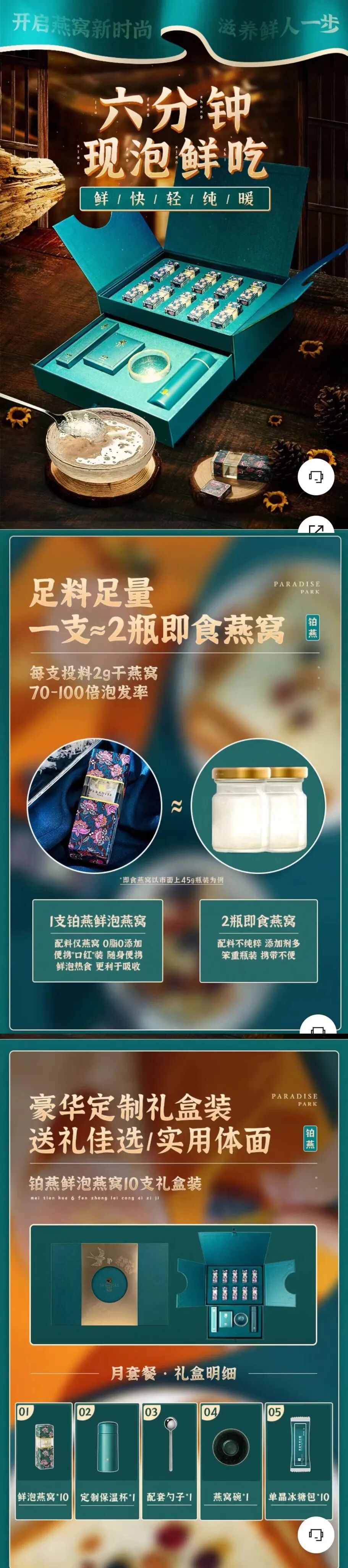 铂燕“以产品为信使,不断创造和引领东方滋补文化新的美好生活方式”为宗旨。除鲜泡燕窝以外,燕窝漱口水、燕窝面膜等燕窝周边陆续上线,以期实现让中华传统滋补更加纯粹和美好,让我们的传统滋补文化更加鲜活与轻盈,用我们的不懈行动成就一个东方滋补力量的品牌符号的企业愿景。