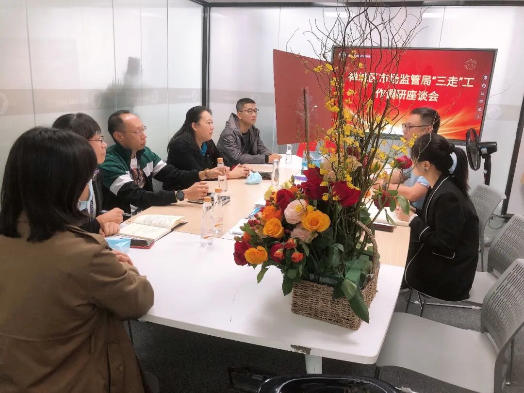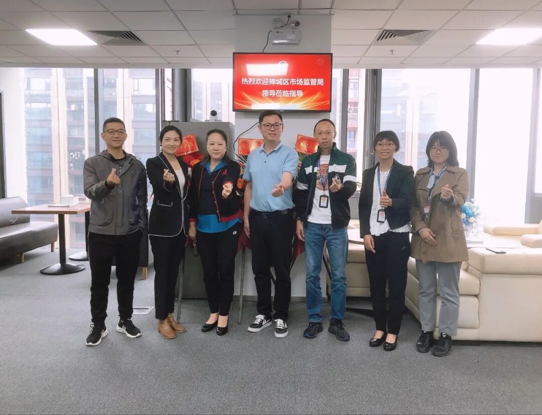 2022年11月3日上午,乔迁第三天,禅城区市场监管局余副局长一行莅临协会秘书处进行“三走”工作调研座谈,支持协会企业“品质工程”暖企“服务包”,并对协会办公室乔迁表示祝贺,鼓励协会再接再厉,再创佳绩!