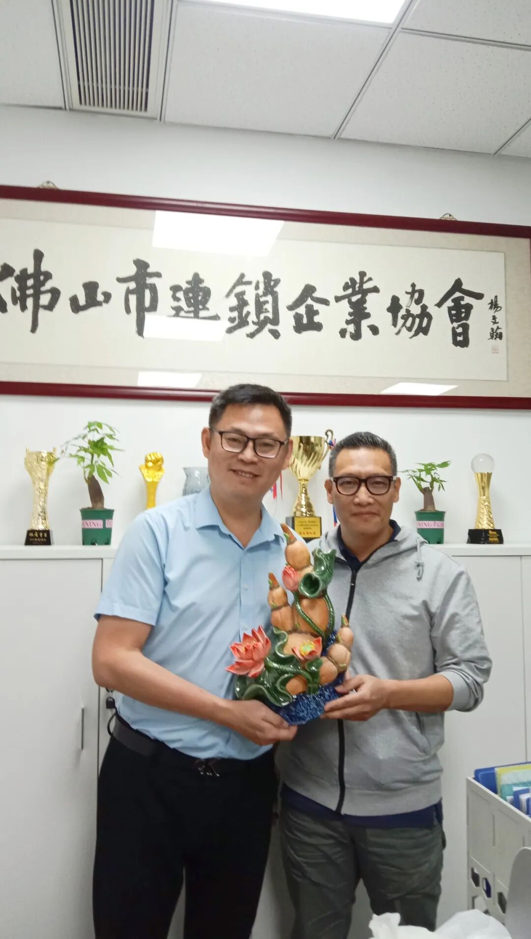 佛山市食要正餐饮管理有限公司到访,并送来“节节高升”摆件祝贺协会乔迁之喜。