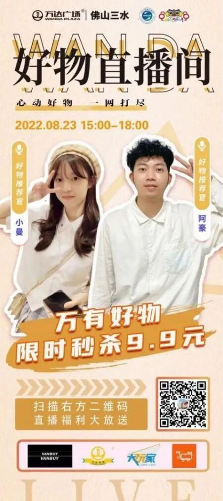 8月23日三水万达广场好物直播间限时秒杀9.9元,苹果手机最高直降600,时下还正在做“好食节”活动,有众多美食超级低价,关注三水万达广场公众号吧!