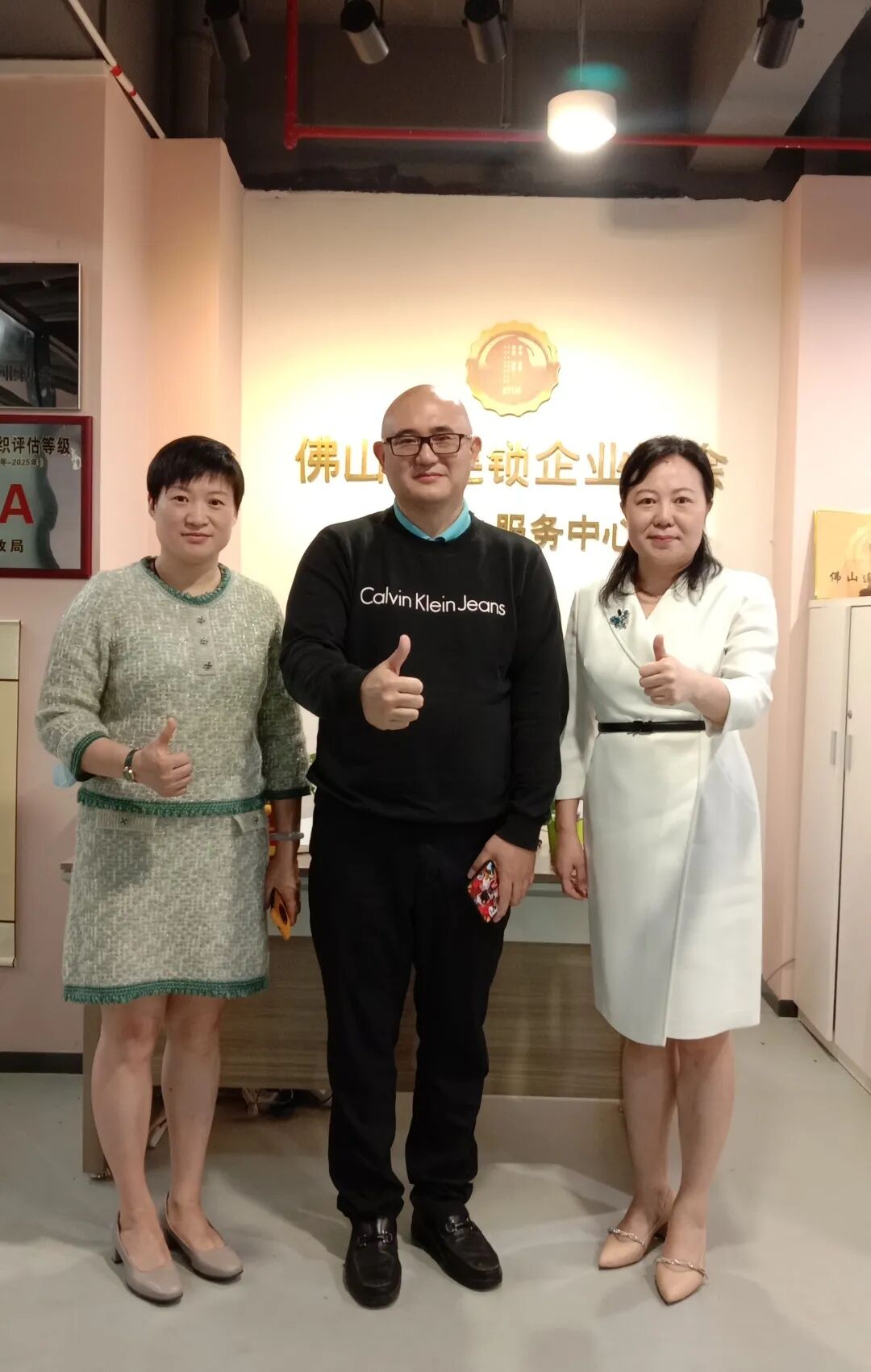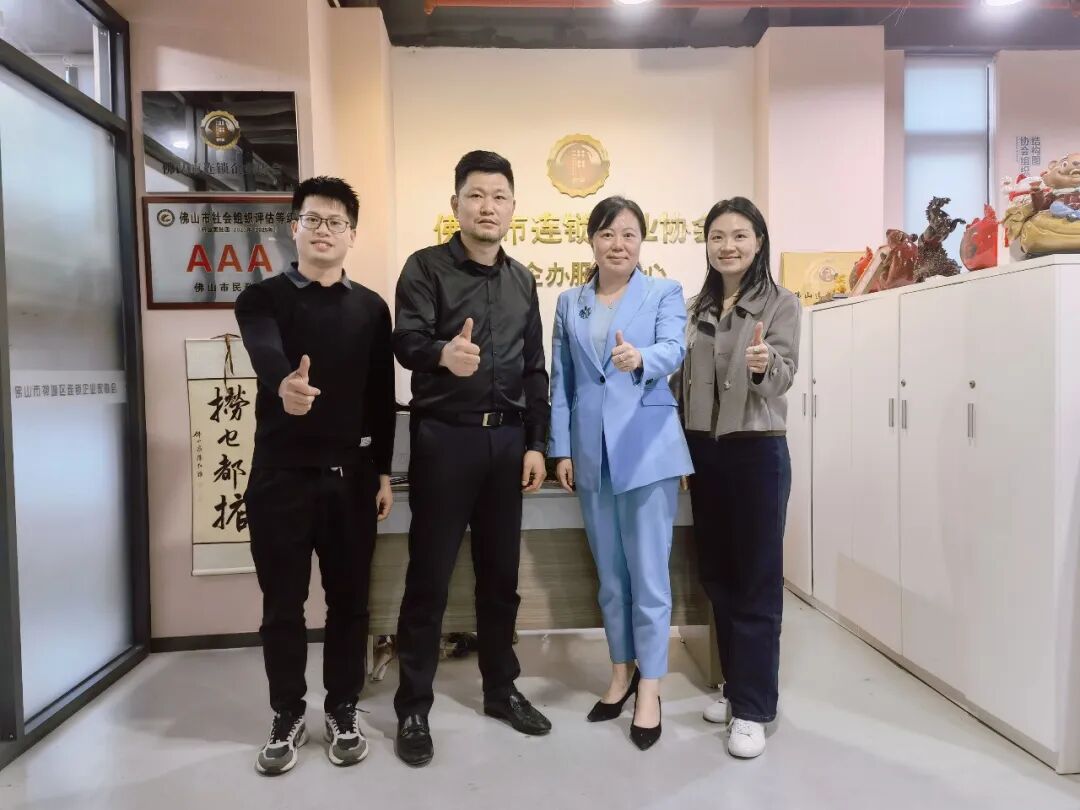 副会长单位粤港澳融资租赁(广州)有限公司,广东莘星传媒科技有限公司,会员单位佛山安侍卫电子商务有限公司到访