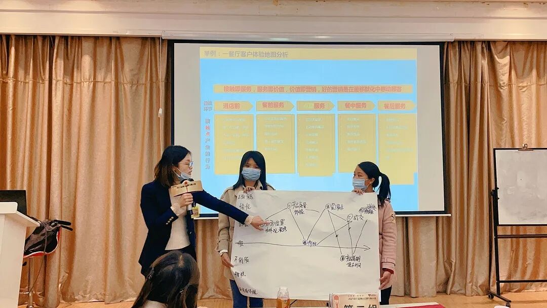 培训开始前,龚老师以幽默诙谐的方式开场,拉近了与参赛选手的距离,在培训中由当前市场的机遇与挑战切入,在短短一天的培训时间内,通过讲授与研讨的授课形式,让选手从市场认知方面去探讨并关注市场趋势,从门店系统图的整体认知到教你营收节流分解,从性格色彩与客户需求认知客户,从产品的设计及组合等方面去认识产品,并指导选手如何做一个好营销活动方案。