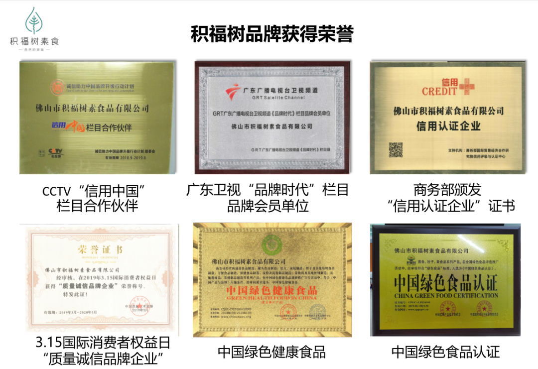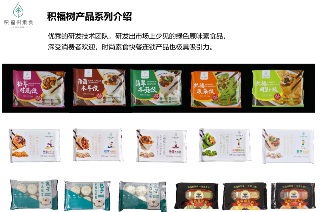 公司2017年成立,素食品品牌为“积福树”。目前积福树素食品已通过线 上线下进入中国千家万户。时尚素食快餐连锁品牌“Veggie time(维吉 泰)”,是积福树属下的一个子品牌,2019年创立(品牌前身是“积福树·素 原味”),是一家麦当劳真功夫模式的中西合璧时尚素食快餐连锁企业。让素食品进入千家万户,让更多人吃上有品质的素食,让吃素成为一种时 尚、成为常态、成为健康环保和尊重生命的代名词,是积福树•维吉泰人矢志 不移的责任和使命!