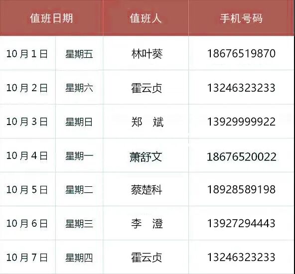 国庆节10月1日至7日放假调休,共7天。10月9日(星期六)上班。1-7日秘书处均有值班,会员企业有需要欢迎联系。