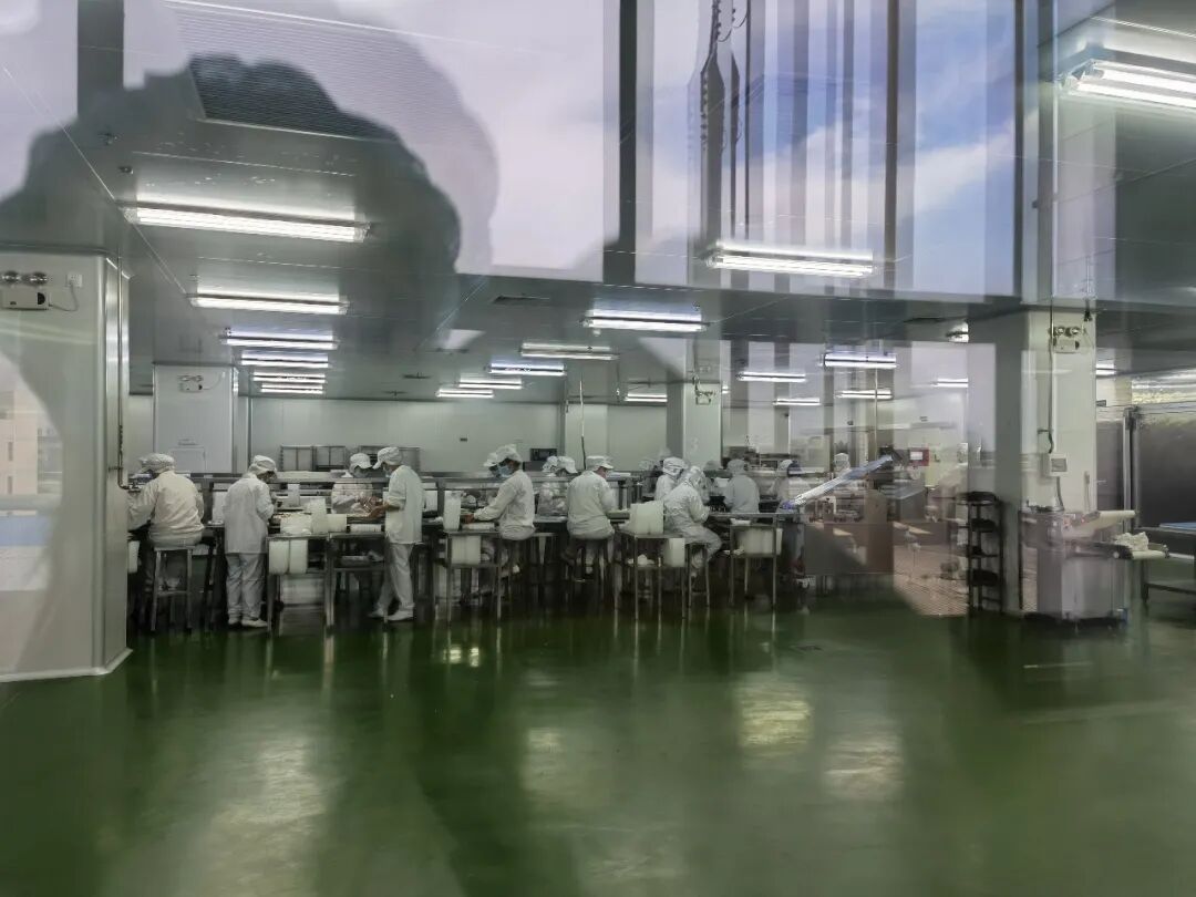 李副总裁带大家参观广东共享中央大厨房(日宥食品)。