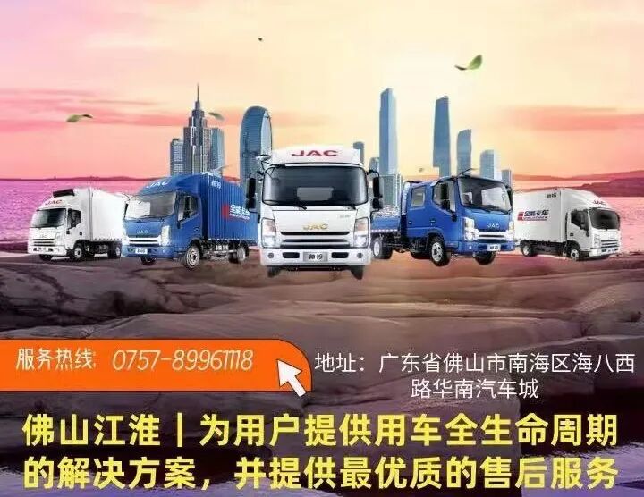 本公司是江淮汽车佛山一级经销。主营帅铃,骏铃全系列轻/中型(4米2~7米8)货车,冷藏车。服务佛山十多年,在桂城、顺德区、大沥、三水、西樵、乐从、里水各车城均有直营店。