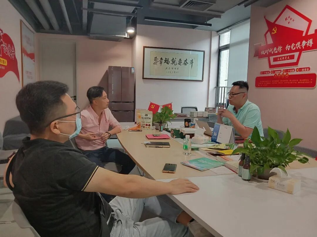 8月5日上午,协会党支部“第一书记”禅城区市场监督管理局二级调研员-田志平,正式到协会指导工作的第一天,陪同秘书处走访协会理事单位-普伟集团旗下品牌“澜沧古茶”,理事单位-三友口腔,以及会员单位-万科产办物业管理。