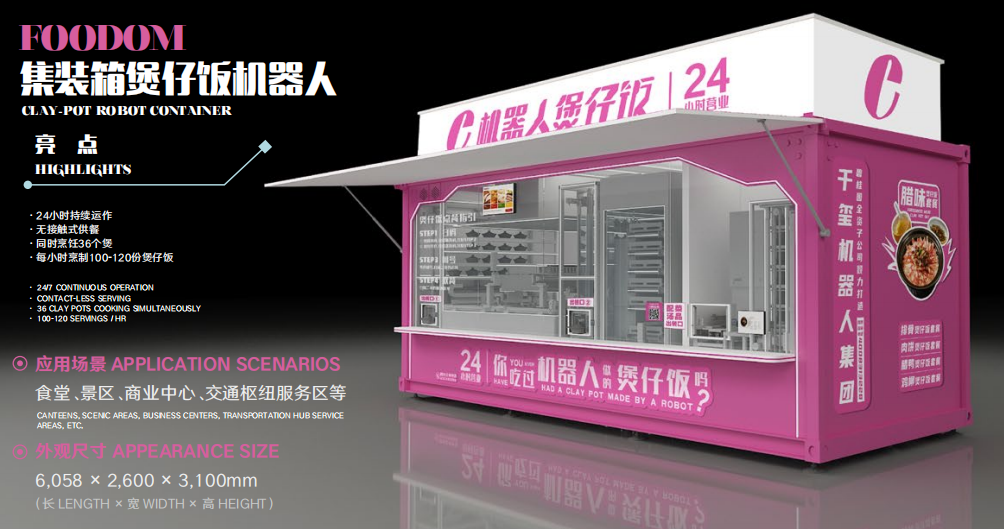 目前,已有多家机器人餐厅正式对外营业,打造涵盖中餐、火锅、煲仔、粉面、汉堡及单机设备为组合的“5+1”业态模式。未来,千玺集团将持续以自主研发为基础,将机器人打造为餐饮标准化的载体,形成覆盖生产、供应链、运营的全产业链体系,促进餐饮行业产业和服务升级。