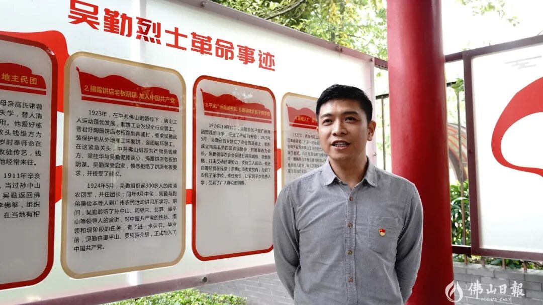 林家荣为到场党员讲解革命烈士吴勤的事迹。图/佛山日报记者孙梦紫