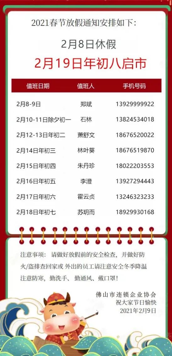佛山市连锁企业协会秘书处祝会员企业新春快乐,牛运亨通!