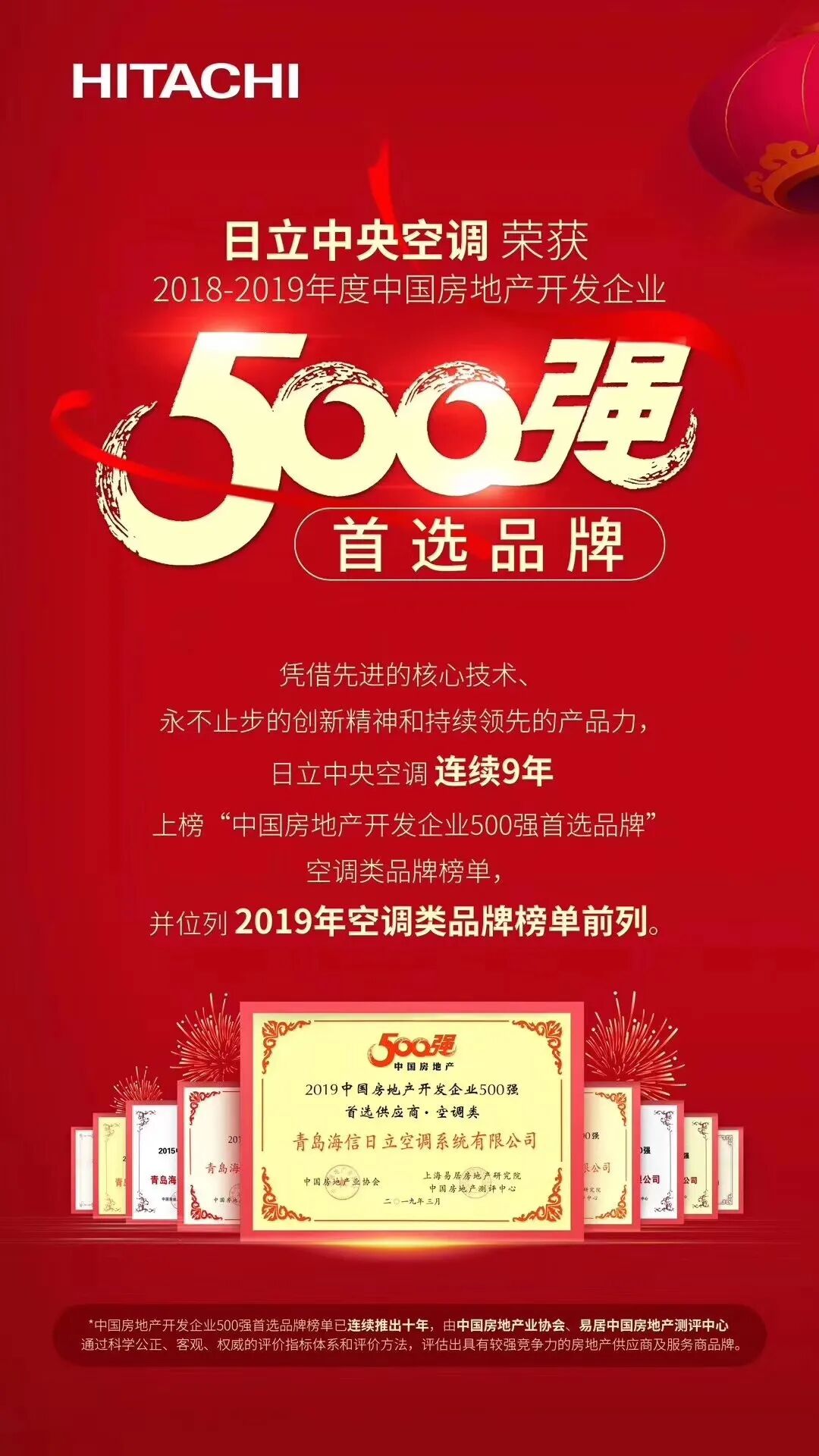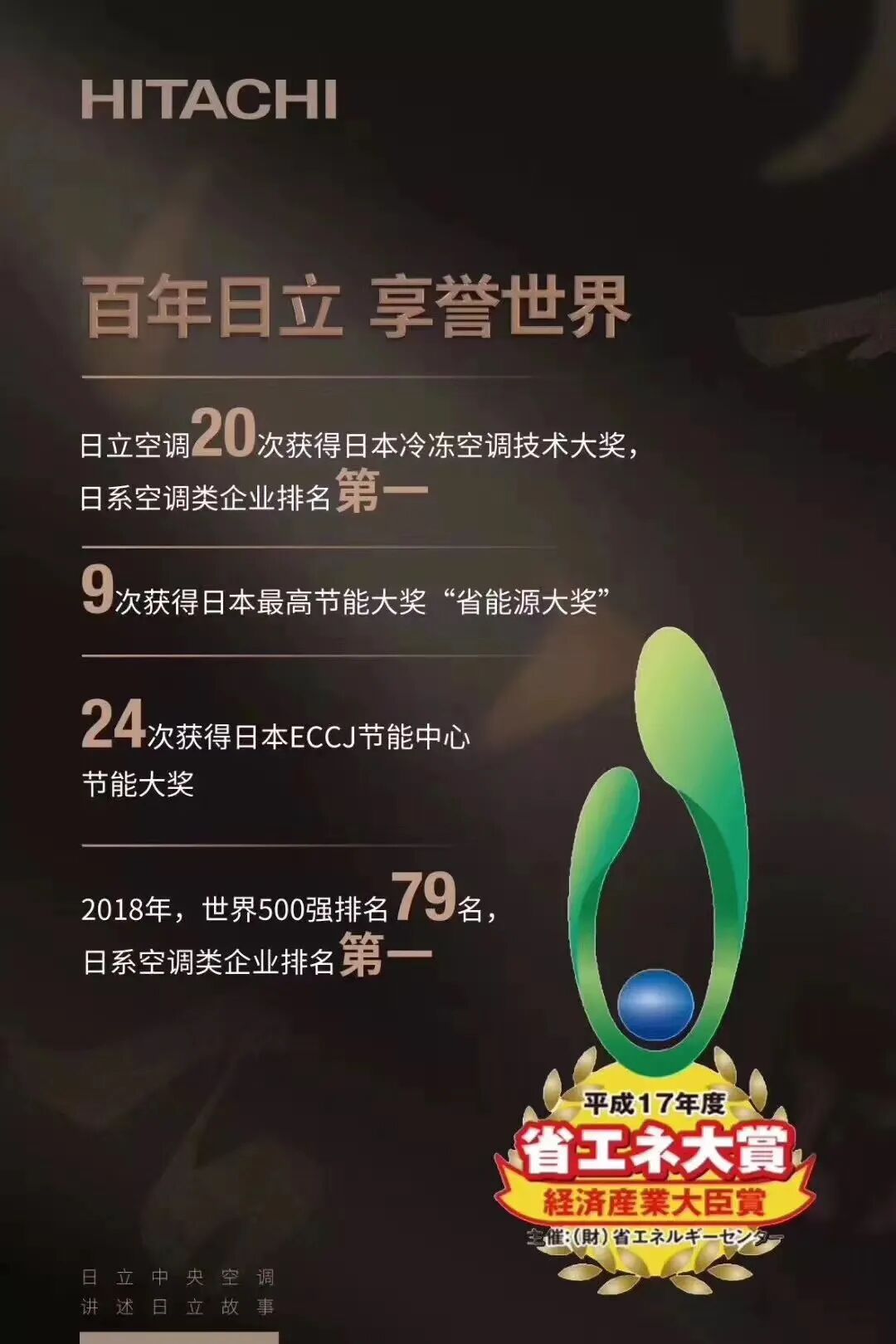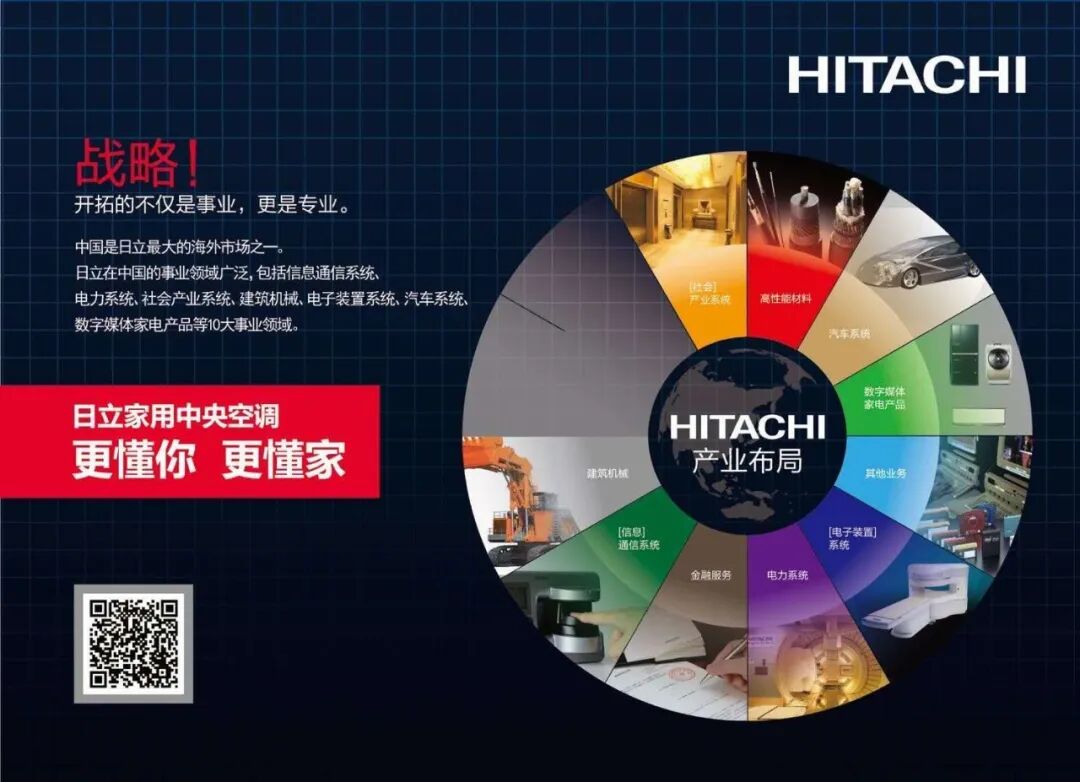 日立始于1910年,是世界 500 强企业,日立空调在1983年发明制造出全球第一台空调用涡旋压缩机,为世界制冷界开启了空调里程的新篇章。日立掌握着变频多联机的三大核心技术(压缩机、变频器、控制系统),拥有400多项技术专利,日立强调“技术引领”,在家用中央空调的洁净技术、除湿技术、强热技术等技术方面处于行业领先地位,成为业内变频多联式空调系统的先进代表。日立中央空调致力为用户提供专业的、 健康的、人性化的空调系统解决方案,同时也是中国家用中央空调市场的领导者,住宅地产销量第一。