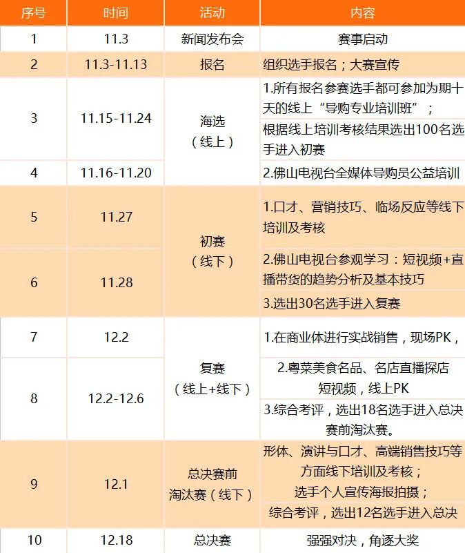 大赛还将为参赛选手量身定制个人宣传小视频,选手可通过抖音短视频、“金牌导购大赛”、“佛山市连锁企业协会”微信公众号等平台进行宣传推广,并通过新媒体直播的方式,为“最佳人气奖”的选手拉票,同时展示佛山商业风采,活跃商圈氛围。