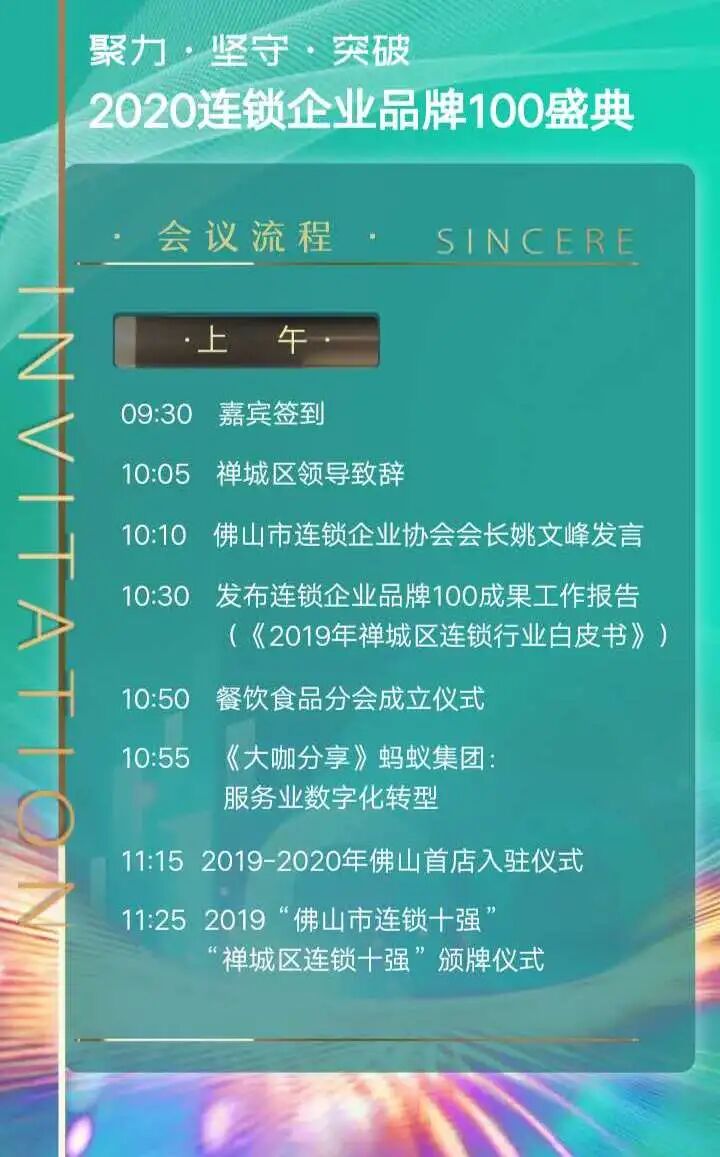 由佛山市商务局、禅城区人民政府指导,禅城区经济和科技促进局、佛山市连锁企业协会联合主办的“2020连锁企业品牌100盛典”将于11月5日举行。展示佛山市连锁商业发展良好态势,集聚连锁企业共谋创新发展,继续贯彻落实连锁企业品牌100计划。