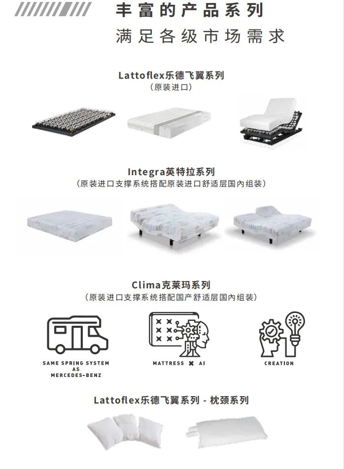 德国乐德飞翼床垫拥有医用级护脊睡眠系统,采用特殊航空高科技材质代替传统的弹簧,可应人体体重、睡姿及生理曲线进行完美的贴合,使身体达到深层次的支撑,奔驰房车里面用的就是这个品牌的床垫,北京301医院,中日友好医院,中南海疗养中心等等医疗机构也是用这个品牌的床垫,对睡眠非常有帮助,也是世界公认对脊椎和腰椎保护和贴合最好的床垫,已有85年历史,不仅睡起来很舒服,还可以明显减轻或预防颈椎腰椎疼痛,也可以两夫妻分开选不同的软硬度。