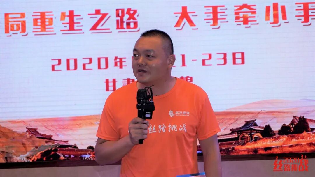 2020丝路挑战发起人——同聚团建总经理孙甲震致辞,在转折之年且任重道远的当下,企业与个人都在寻求突破,加注力量,2020丝路挑战应运而生,联合多家单位共同推动,这是一场终生难忘的人生经历与体验 。