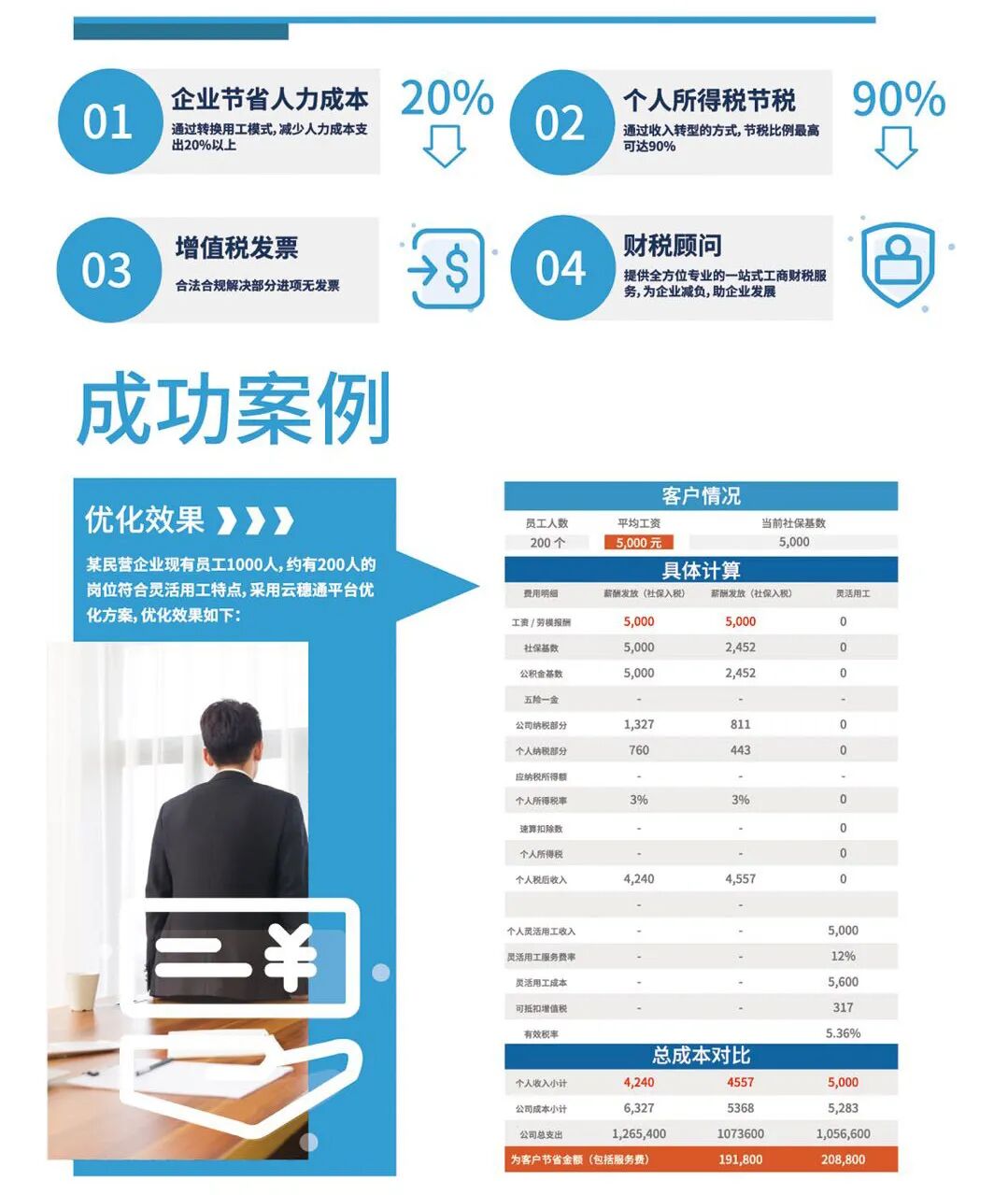佛山云榕网络科技有限公司是一家基于灵活用工模式的税务优化互联网平台公司。公司旗下平台“云穗通”紧跟国家金税三期政策发展,通过整合全国税源洼地,利用手机小程序便利,以众包分包模式为企业优化用人及财税结构,合法合规降低财税成本。云穗通平台税务解决方案已全面赋能物流配送、家政护理、医美健身、软件开发、教育咨询培训以及微商、主播等新兴网络服务业,为众多传统和新兴行业企业在金税三期推进过程中实现合规降费增效发展提供助力。