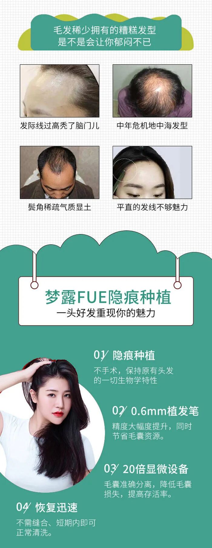 ★梦露整形头皮毛囊检测+FUE技术植发(200单位试种)